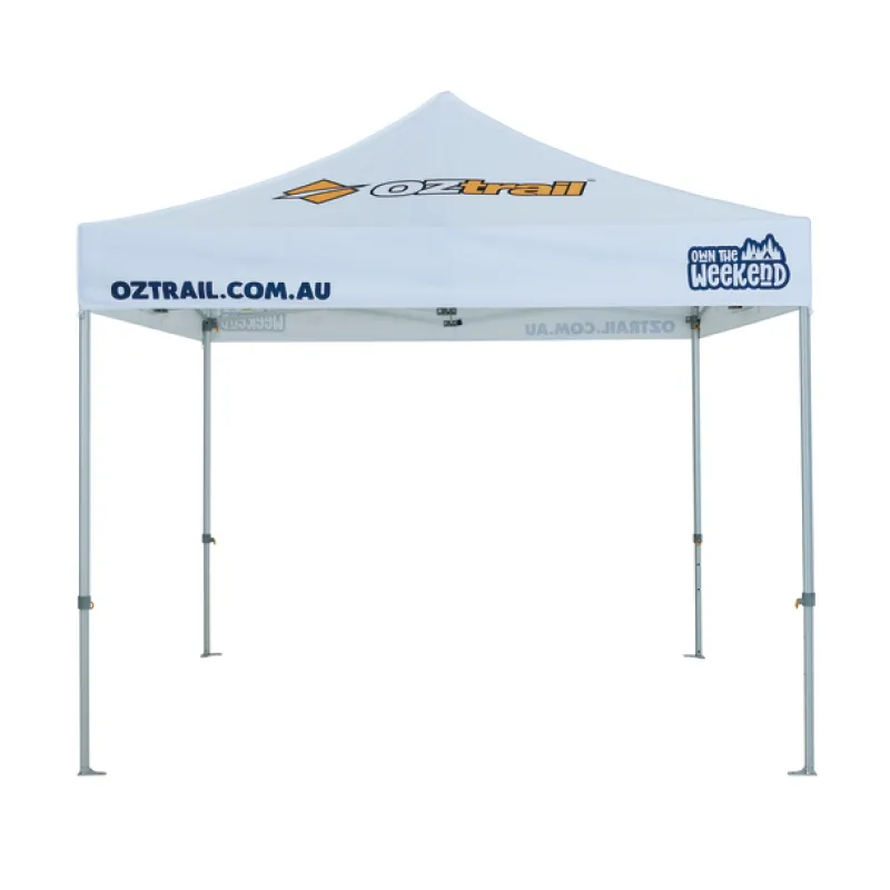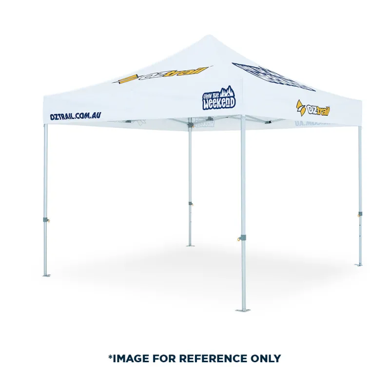 The OZtrail Commercial Pro series is a heavy-duty commercial strength gazebo. Made with a 45mm hex frame and reinforced truss, this gazebo has been designed with strength and durability at front of mind. Certified by Australian Engineers to comply with the Building Code of Australia, it ensures the sufficiency of design for temporary shade structures. The heavy-duty 500D canopy provides reliable protection from the sun, while the 1680D ultra-tough wheeled bag guarantees your gazebo will be protected during transit. Wall not included in custom print examples.