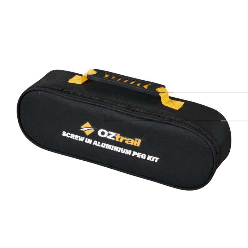 The Oztrail Aluminium Peg Kit offers a complete solution for securing your tent or shelter, featuring a variety of peg sizes to suit different ground conditions. It includes 4 large pegs (30cm), 4 medium pegs (20cm), 4 small pegs (12cm), large and medium clips, a drill adaptor for quick setup, and a durable carry bag to keep everything organized and ready for your next adventure.