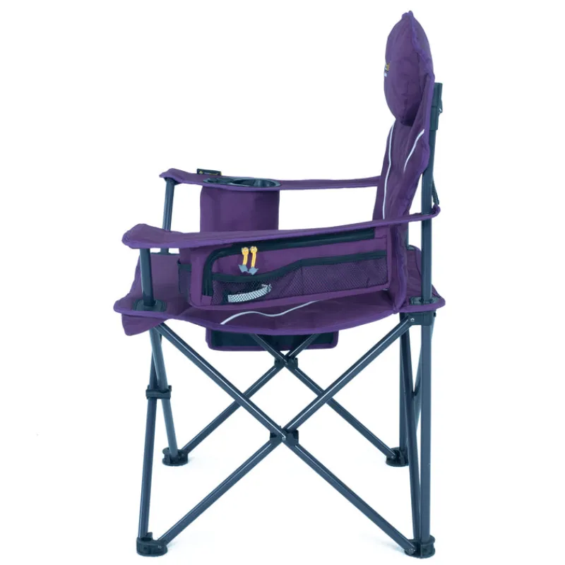 With a strong high-tensile steel frame and padded double-layer fabric, this armchair provides comfort and durability. It also includes a pillow-topped headrest, insulated drink holder, and side organiser for convenience.