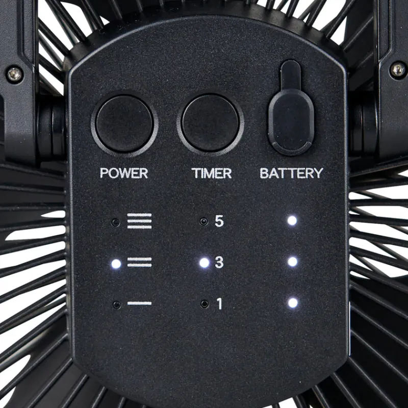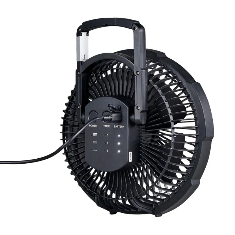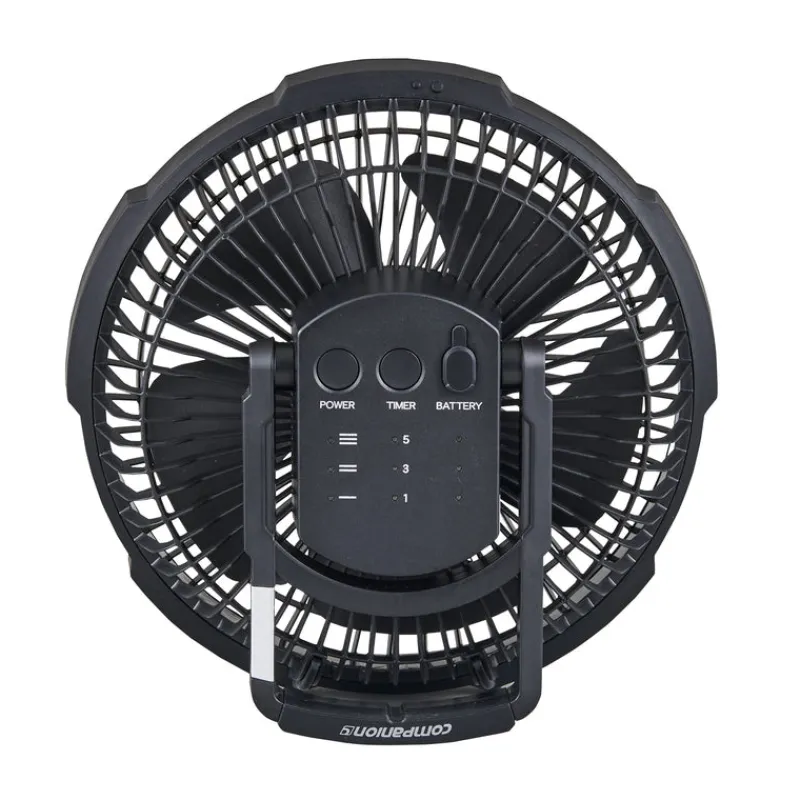 Designed for ultimate flexibility, the Aerobreeze Anywhere Fan is built to go wherever you do. With a 2-in-1 stand and hanging hook system, it can sit securely on a table or hang easily inside a tent, swag, or anywhere you need cooling comfort. The fan head pivots 180 degrees, giving you complete control over airflow direction. Choose from four speed settings to match your needs, and set one of three pre-programmed timers – or let it run continuously. Clear indicator lights show your selected speed, timer setting, and battery level at a glance. Powered by a 3,000mAh rechargeable lithium battery, it’s perfect for off-grid adventures. Built tough with ABS plastic and a protective rubber guard, it’s made to handle life on the road.