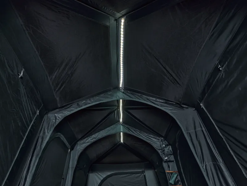 The large gusseted windows provide excellent airflow, reduce condensation, and can be pegged out in bad weather while maintaining ventilation. The BlockOut® coating on the fly reduces heat by up to 10°C and blocks 95% of light, making it perfect for afternoon naps or sleep-ins. The integrated Lumos™ light system in each room provides fuss-free zoned lighting, allowing you to dim the brightness for an ideal balance of light output and battery life.