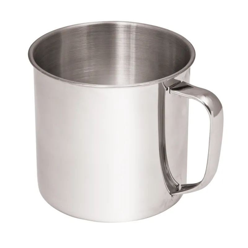 A lightweight and durable stainless steel mug with a seamless interior for easy cleaning and use in outdoor settings.