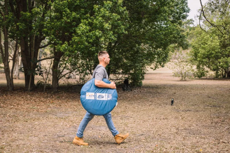 This easy-to-use 2-person pop-up tent is ideal for festivals and weekend getaways. Its silver-coated, water-resistant material keeps you dry, while the mesh roof vents provide airflow. Simple to set up and pack away in its carry bag.