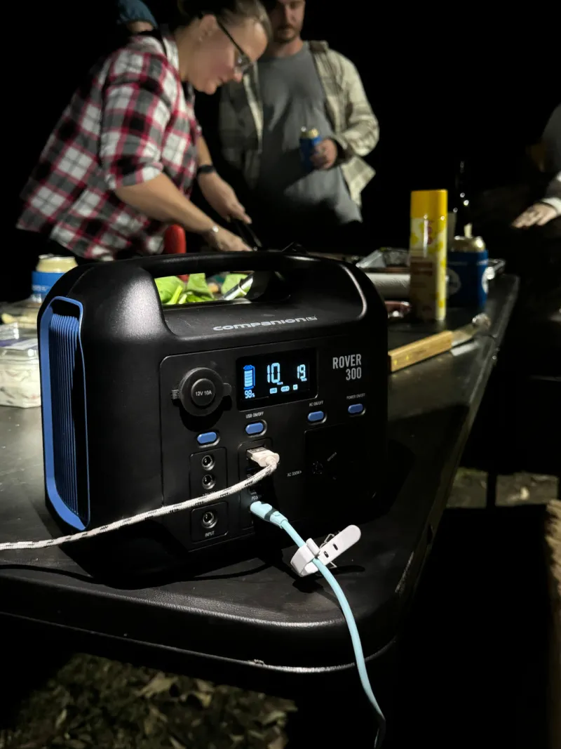 Introducing the Companion Rover 300w Power Station, this compact and reliable portable powerstation features a 288Wh Lithium LiFePo4 battery and a 300W Pure Sine Wave AC inverter, providing reliable power for your devices. With multiple output options, including a 12V socket, USB-A/USB-C ports, and a DC output, it’s versatile enough to charge portable fridges and freezers, phones, laptops, drones, CPAP machines, lighting, other smart devices, and other essential devices. This versatility also allows you to charge multiple devices simultaneously.