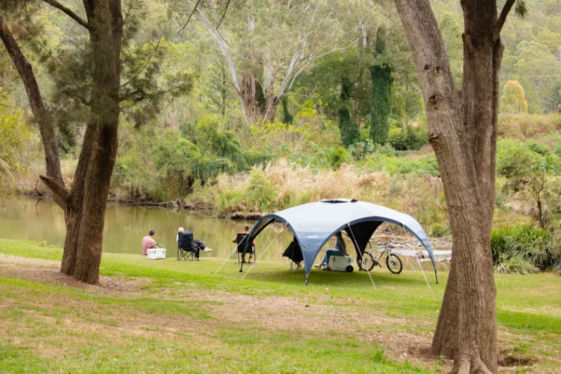 - Full steel frame combined with a 75 denier, 1000mm waterhead, seam sealed BlockOut® canopy, built to withstand strong winds, light rain and blocks heat to keep you cool.