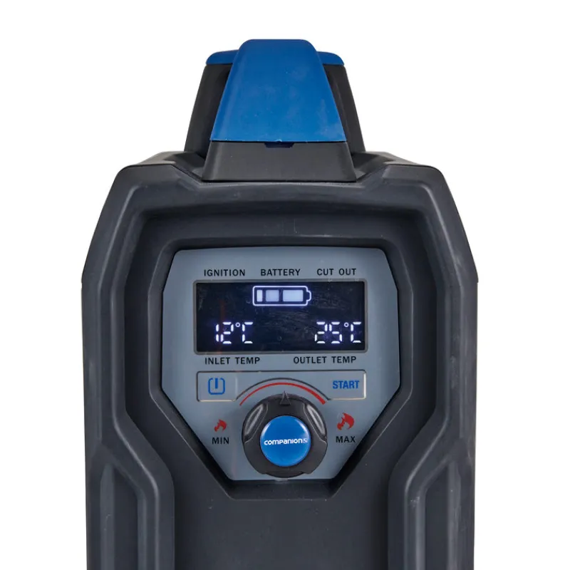 - Enhanced LED Display: The upgraded display is easy to read even in direct sunlight, showing important information like flame status, input/output temperatures, battery levels, and warning indicators.