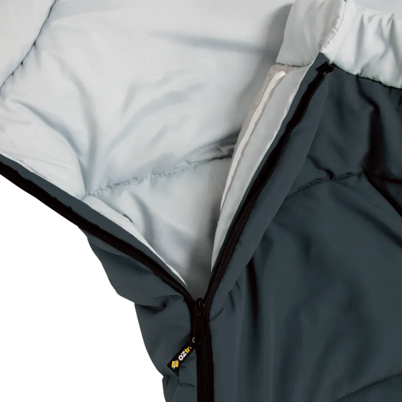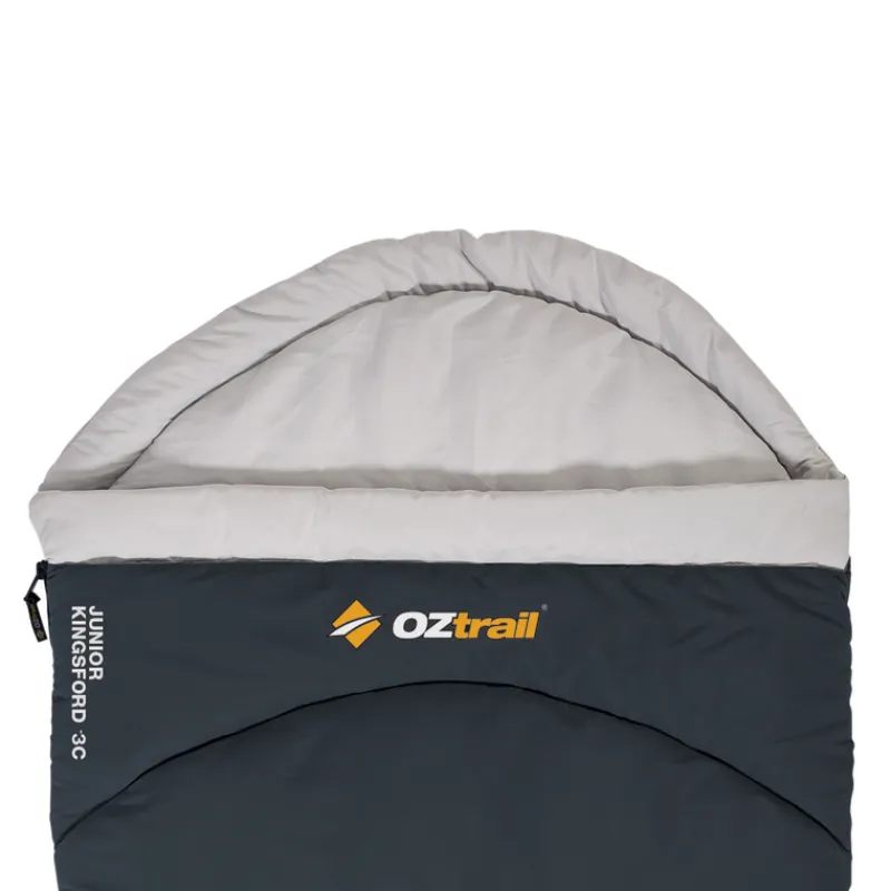 This junior-sized Kingsford sleeping bag is designed for cool conditions. Its oversized design ensures comfort with a contoured hood, 80% recycled fill, and soft polyester fabric. Machine washable for easy care.