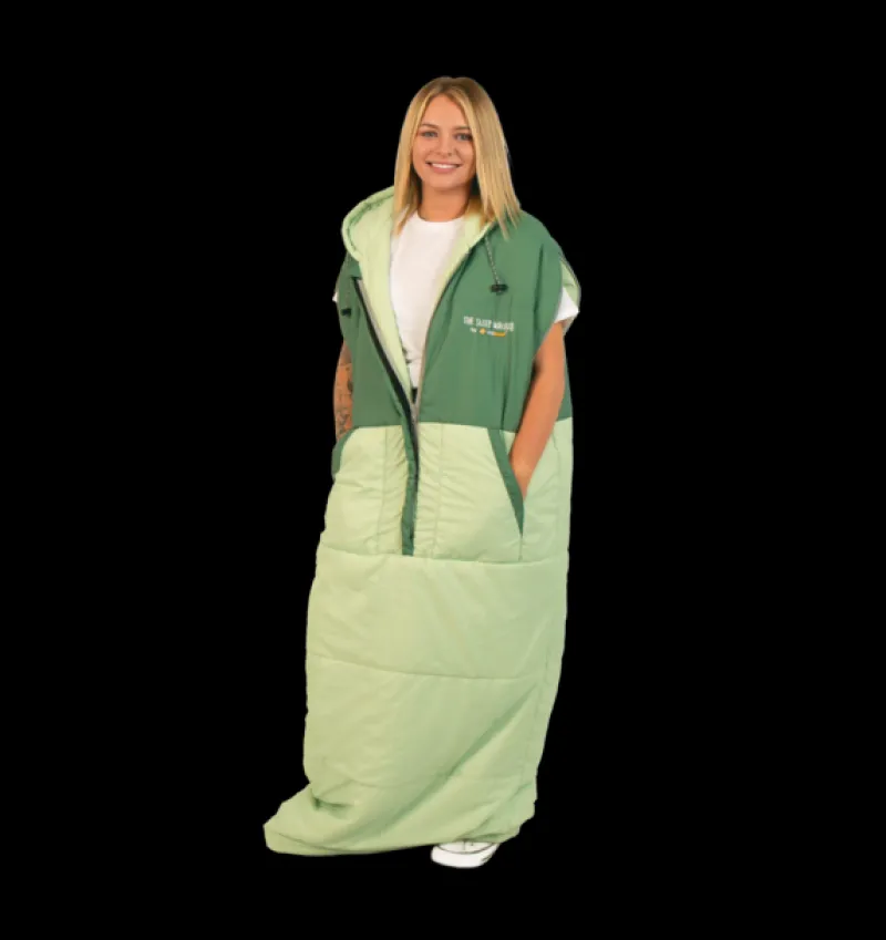 The Sleep Walker wearable sleeping bag offers warmth and comfort for both sleeping and walking. Its eco-friendly materials and practical design make it ideal for outdoor and indoor use.